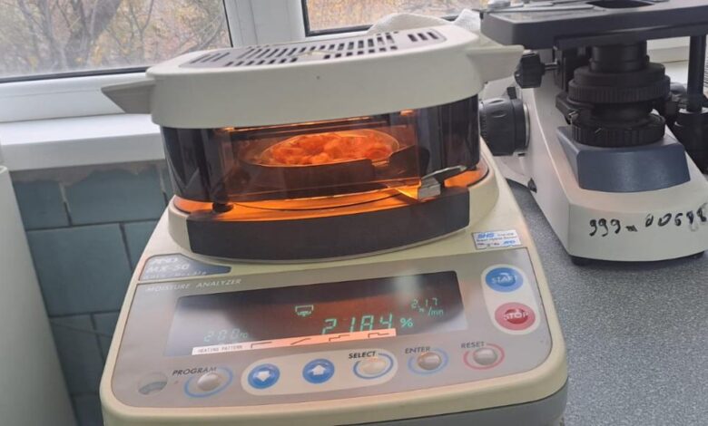 Жобада ылғалдылық пен су көрсеткіштеріне ерекше назар аударылды, себебі олар шикізаттың микробиологиялық тұрақтылығын анықтайды.