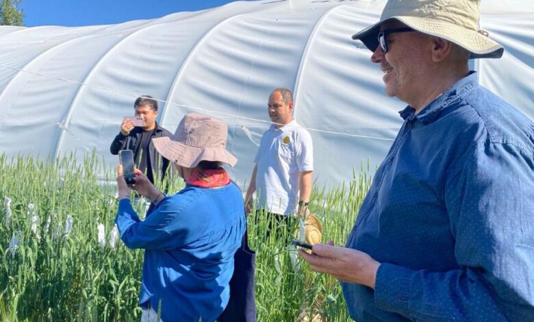 Егін станцияларында жүргізіліп жатқан жұмыстар аясында қонақтар ғалымдардың ғылыми жұмыстарымен танысып, жаздық жұмсақ және қатты бидайға мамандандырылған селекциялық питомниктердің жұмысын тамашалады.